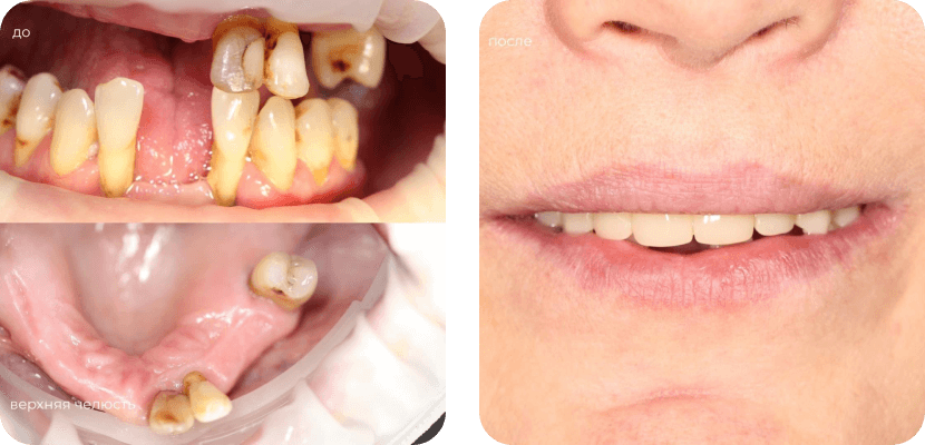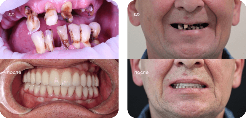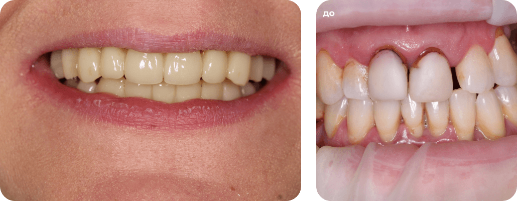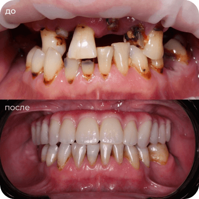 Протезирование зуба с использованием имплантата (Постоянный металлокерамический протез, устанавливающийся на имплантаты, устаноленные методом All-On-6)